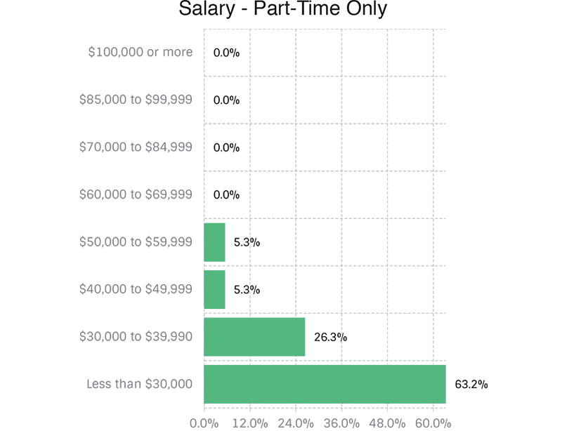 The next three graphs illustrate salary ranges broken out by the three primary categories of full-time workers.