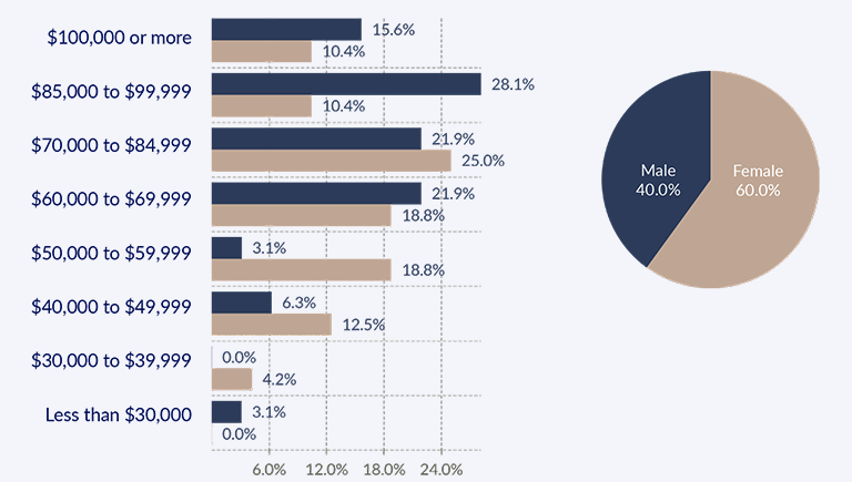 - 54% earn $70,000 or more (compared to 34% in 2022 and 20% in 2019)
